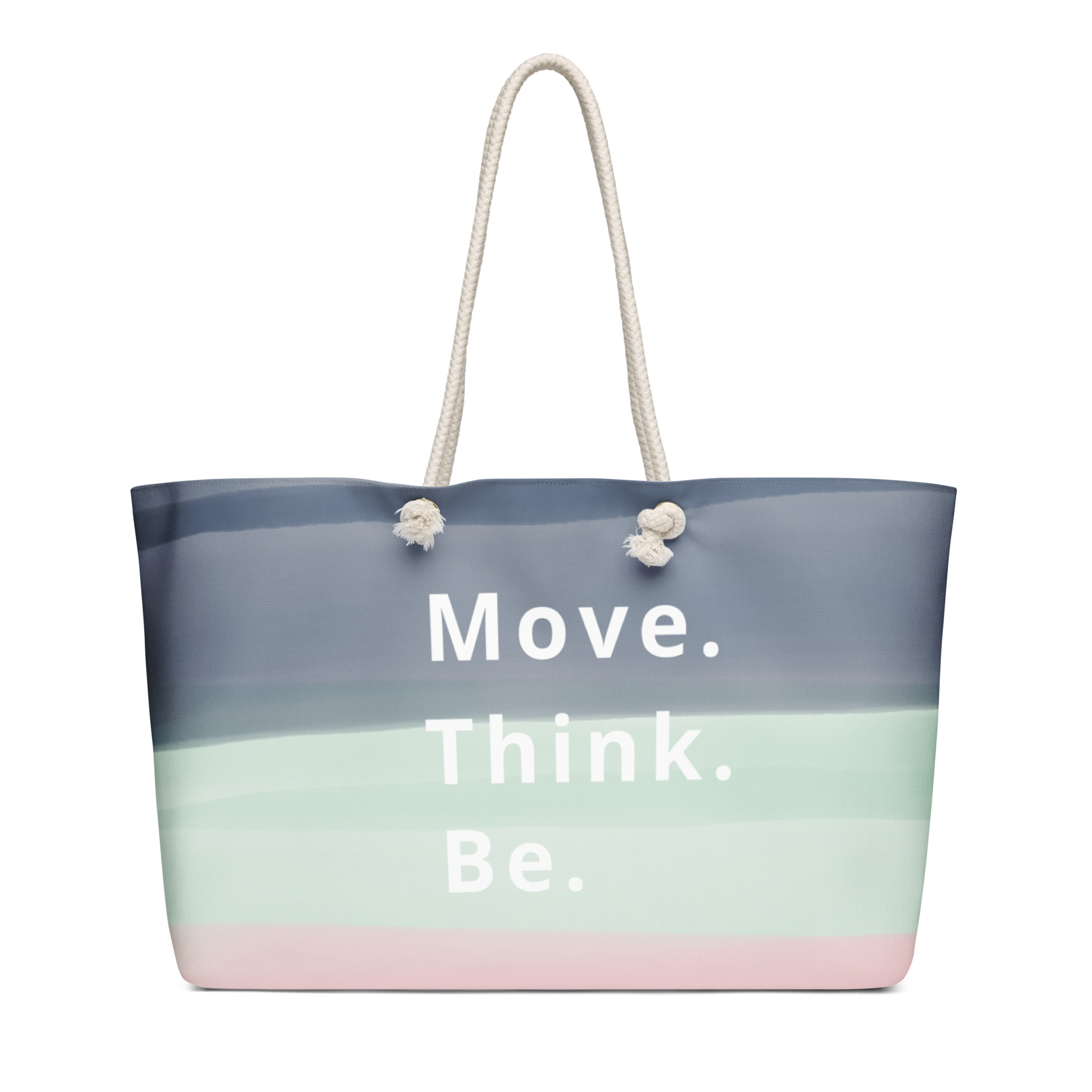 • Cream-colored cotton rope handles through metal grommets